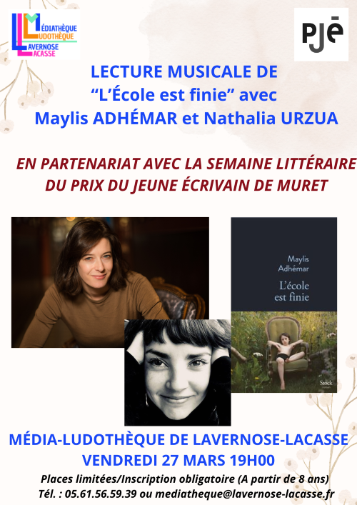 La média-ludothèque organise une lecture musicale de "l'école est finie" avec Maylis Adhémar et Nathalia...