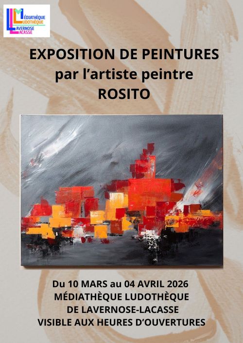 La média-ludothèque organise une exposition de peintures de l'artiste peintre Rosito du 10 mars au 4...